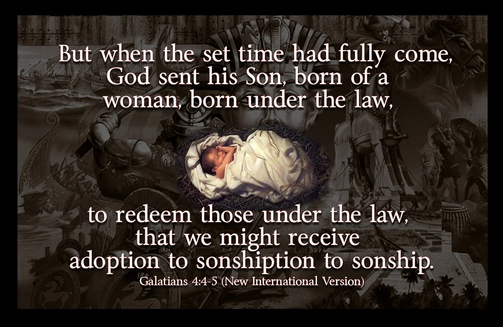 “But when the set time had fully come, God sent his Son, born of a woman, born under the law, to redeem those under the law, that we might receive adoption to sonship.”  Galatians 4:4-5