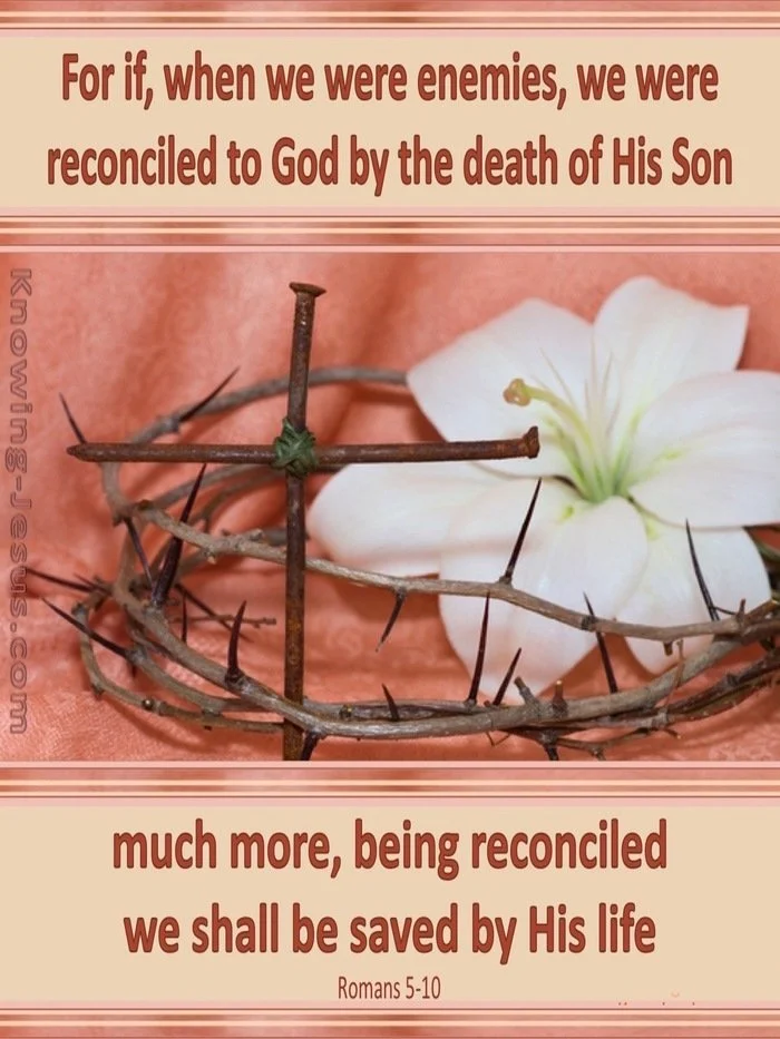 “For if, while we were God’s enemies, we were reconciled to him through the death of his Son, how much more, having been reconciled, shall we be saved through his life!  Not only is this so, but we also boast in God through our Lord Jesus Christ, through whom we have now received reconciliation.”  Romans 5:10-11