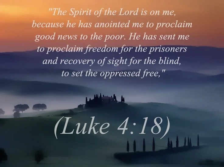 “The Spirit of the Lord is on me, because he has anointed me to proclaim good news to the poor.  He has sent me to proclaim freedom for the prisoners and recovery of sight for the blind, to set the oppressed free, to proclaim the year of the Lord’s favor.”  Luke 4:18-19