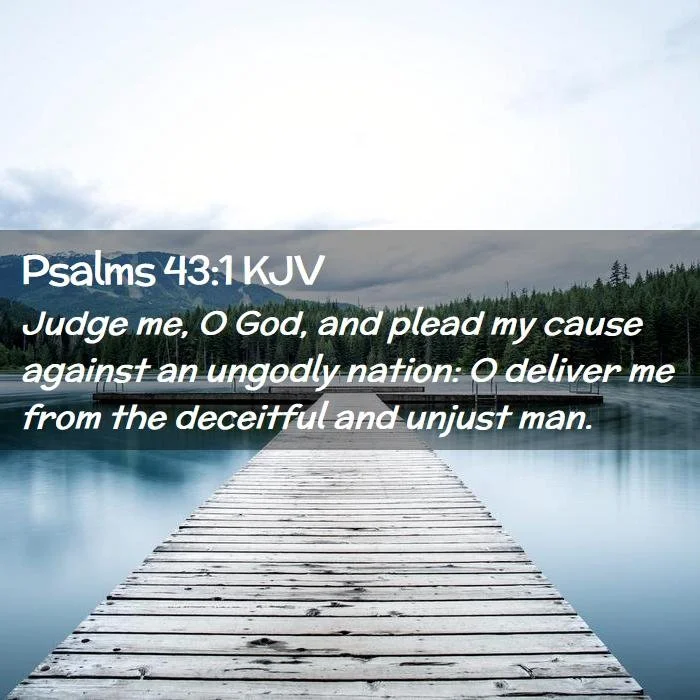 “Vindicate me, my God, and champion my cause against an unfaithful nation.  Rescue me from those who are deceitful and wicked.”  Psalms 43:1