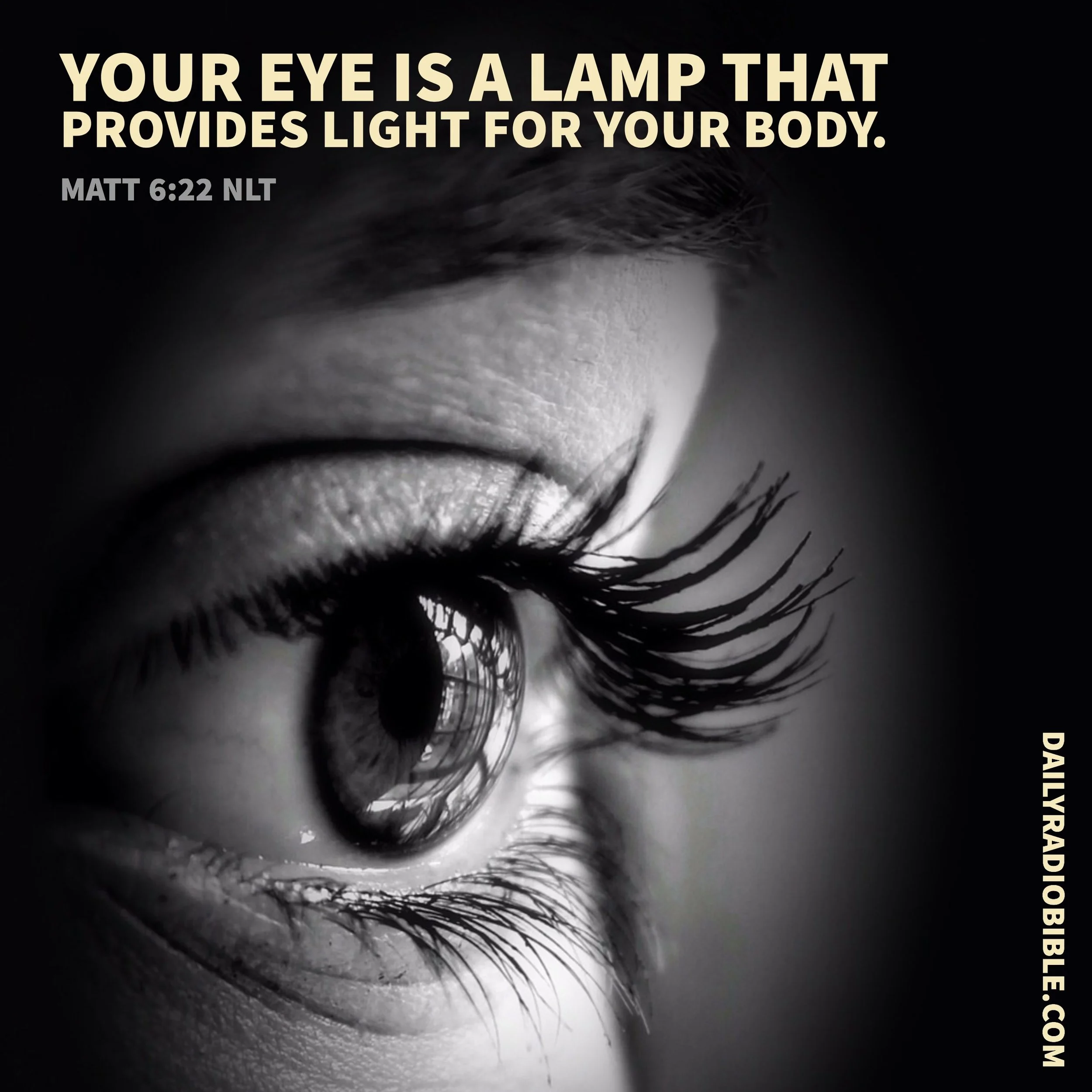 “The eye is the lamp of the body.  If your eyes are healthy, your whole body will be full of light.  But if your eyes are unhealthy, your whole body will be full of darkness.  If then the light within you is darkness, how great is that darkness!  No one can serve two masters.  Either you will hate the one and love the other, or you will be devoted to the one and despise the other.  You cannot serve both God and money.”  Matthew 6:22-24