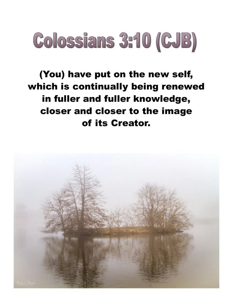 “Put to death, therefore, whatever belongs to your earthly nature: sexual immorality, impurity, lust, evil desires and greed, which is idolatry. Because of these, the wrath of God is coming. You used to walk in these ways, in the life you once lived. But now you must also rid yourselves of all such things as these: anger, rage, malice, slander, and filthy language from your lips. Do not lie to each other, since you have taken off your old self with its practices and have put on the new self, which is being renewed in knowledge in the image of its Creator.” Colossians 3:5-10