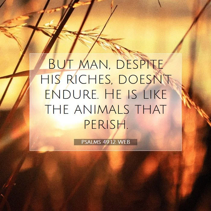 “For all can see that the wise die, that the foolish and the senseless also perish, leaving their wealth to others. Their tombs will remain their houses forever their dwellings for endless generations, though they had named lands after themselves. People, despite their wealth, do not endure; they are like the beasts