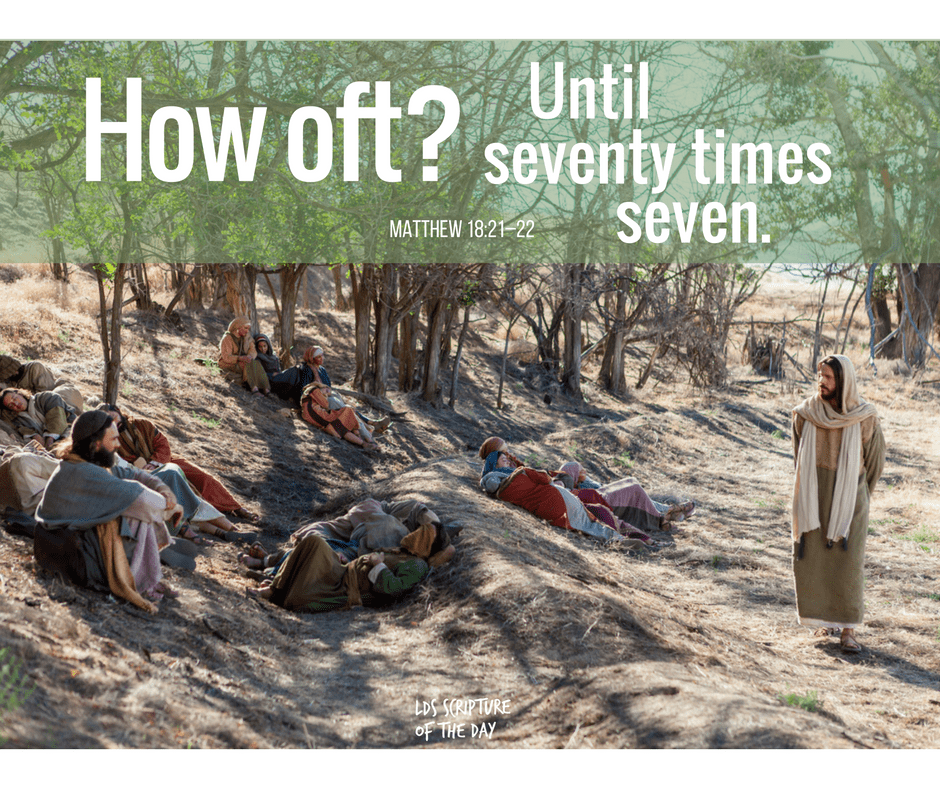 “Then Peter came to Jesus and asked, ‘Lord, how many times shall I forgive my brother or sister who sins against me? Up to seven times?’ Jesus answered, ‘I tell you, not seven times, but seventy-seven times. (The Parable of the unmerciful servant.) ‘Then the master called the servant in. “You wicked servant,” he said, “I canceled all that debt of yours because you begged me to. Shouldn’t you have had mercy on your fellow servant just as I had on you?” In anger his master handed him over to the jailers to be tortured, until he should pay back all he owed. ‘This is how my heavenly Father will treat each of you unless you forgive your brother or sister from your heart.’” Matthew 18:21-22, 32-35