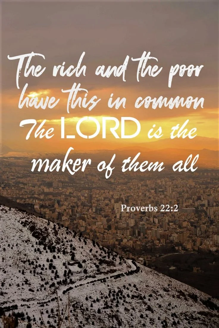 “Rich and poor have this in common: The Lord is the Maker of them all.” Proverbs 22:2
