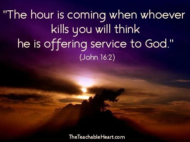 “They will put you out of the synagogue; in fact, the time is coming when anyone who kills you will think they are offering a service to God.” John 16:2
