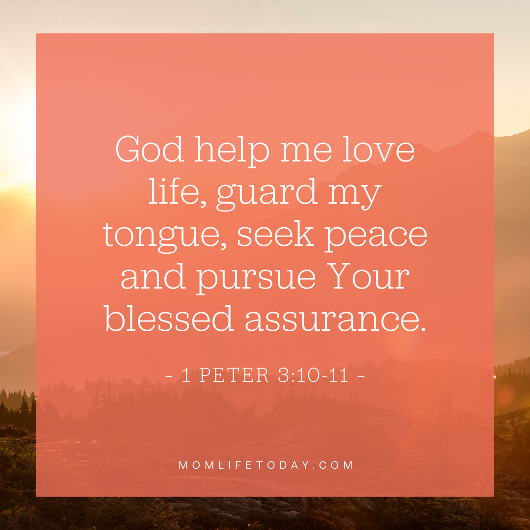“Whoever would love life and see good days must keep their tongue from evil and their lips from deceitful speech. They must turn from evil and do good; they must seek peace and pursue it.” 1 Peter 3:10-11