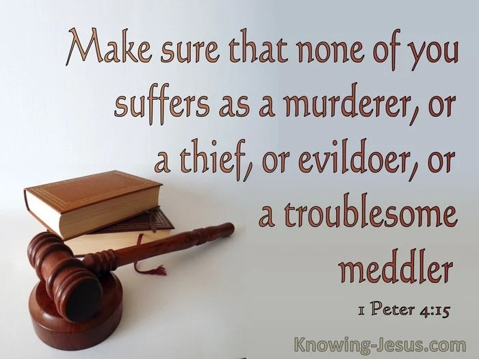 Let none of you suffer as a murderer, a thief, an evildoer, or a meddler.” 1 Peter 4:15