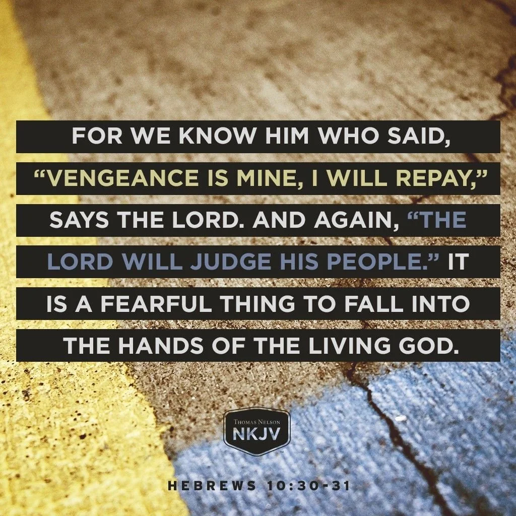 “For we know him who said, ‘It is mine to avenge; I will repay,’ and again, ‘The Lord will judge his people.’ It is a dreadful thing to fall into the hands of the living God.” Hebrews 10:30-31